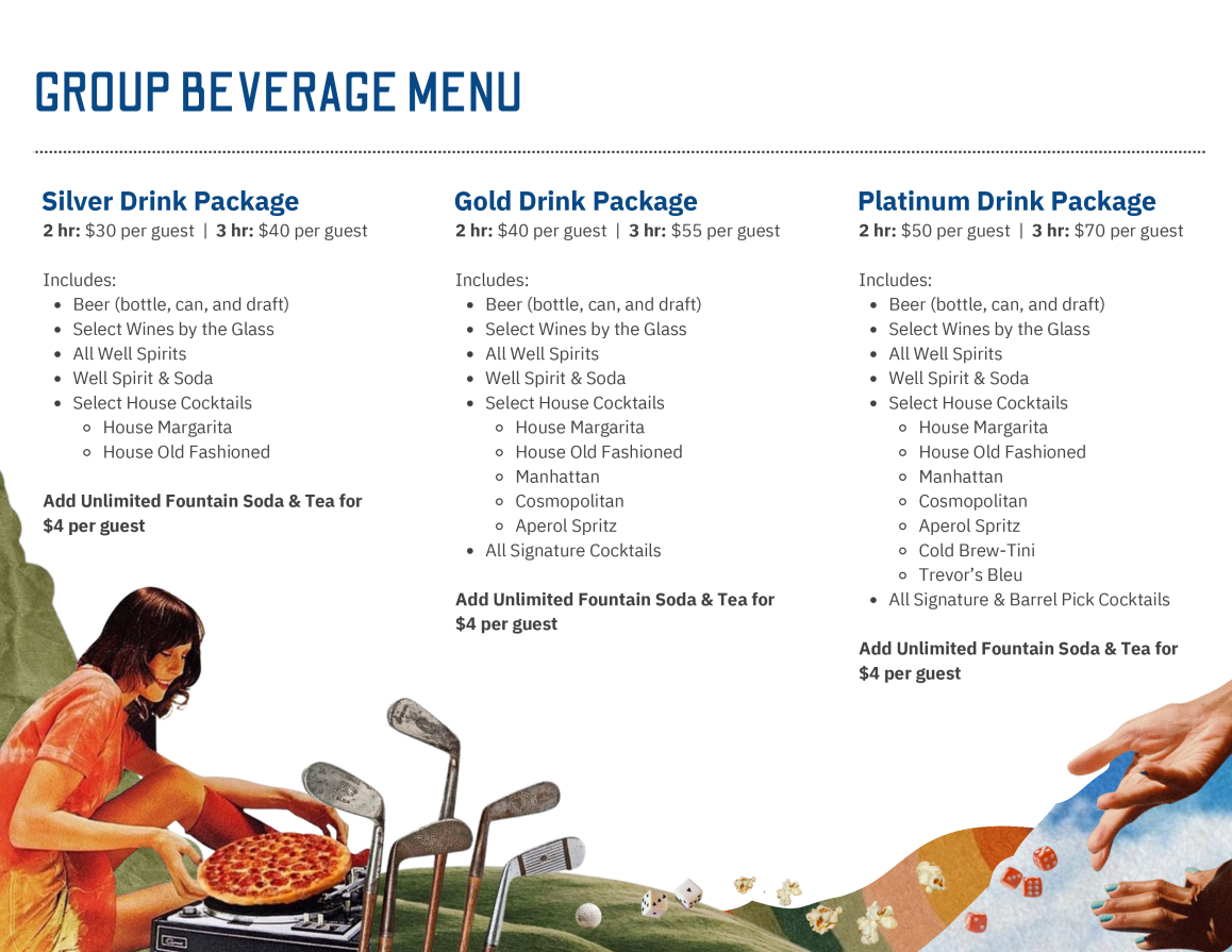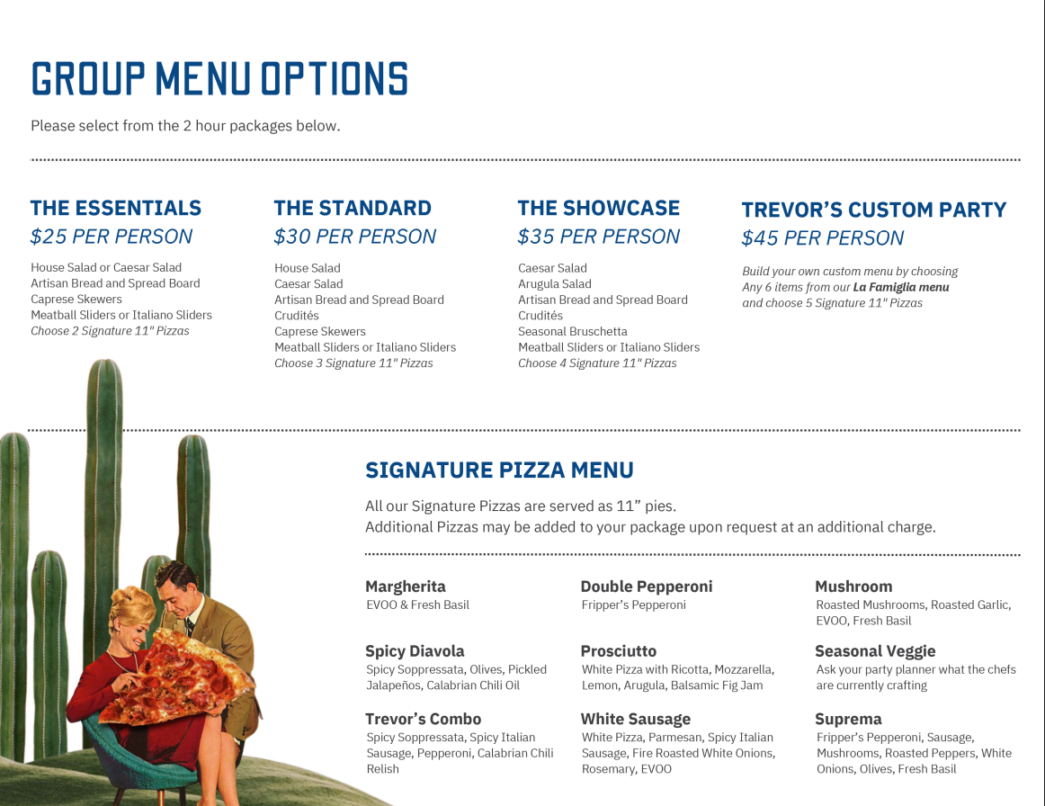 Partial or full buyout of patios, lounges, or restaurants at any Trevor’s location.