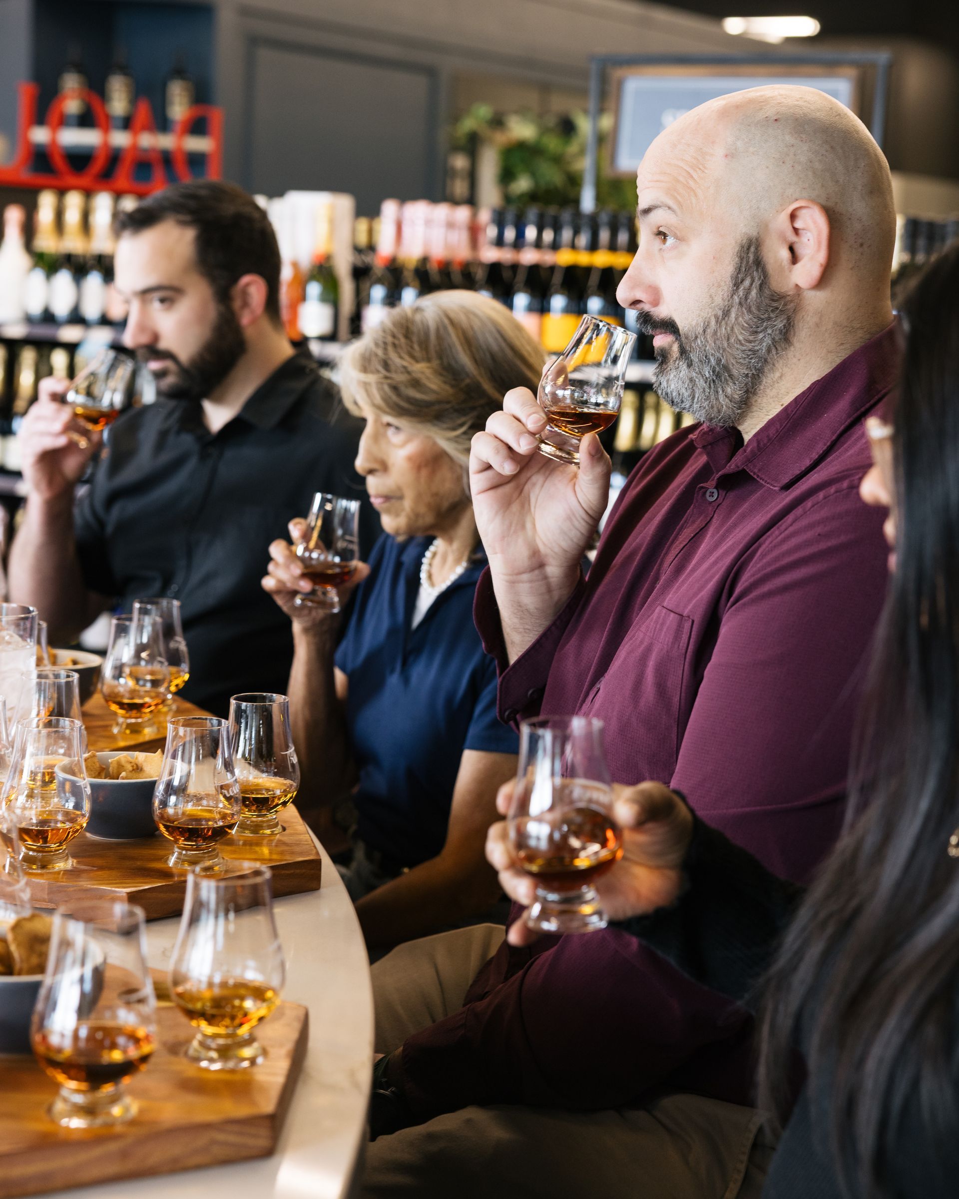 Our knowledgeable team will craft a personalized tasting class that covers a diverse array of styles and flavors, with up to 6 samples tailored to your preferences. Relax and indulge as we provide everything needed for a memorable experience. Engage with our experts as they share insights, answer questions, and delve into the rich history and context of various brands and tasting techniques.